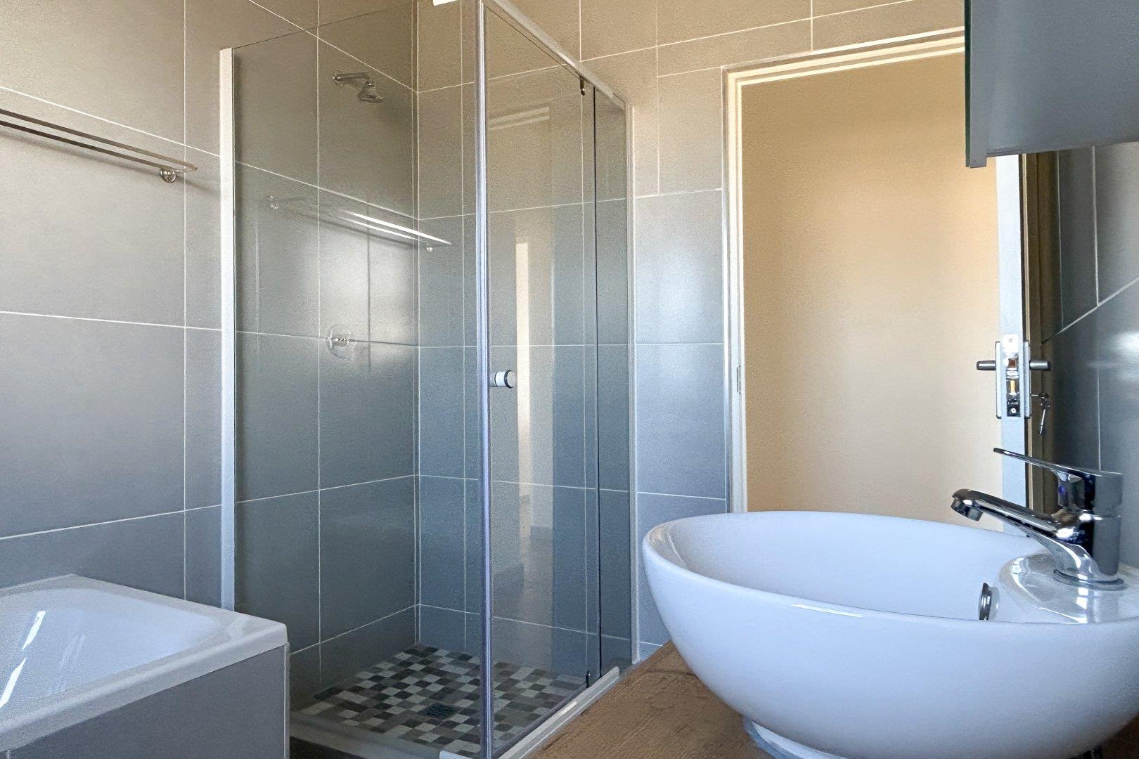 Experience the luxurious living of this extraordinary house. Three generously sized bedrooms, two full bathrooms, and modern kitchen. The open-plan living area creates a welcoming and relaxed atmosphere. Main bedroom boasts a dressing room and full ensuite. Double garage and spacious erf. Burglar bars installed to enhance security. The extra-large solar water geyser will save you electricity. THIS HOUSE IS A MUST SEE.