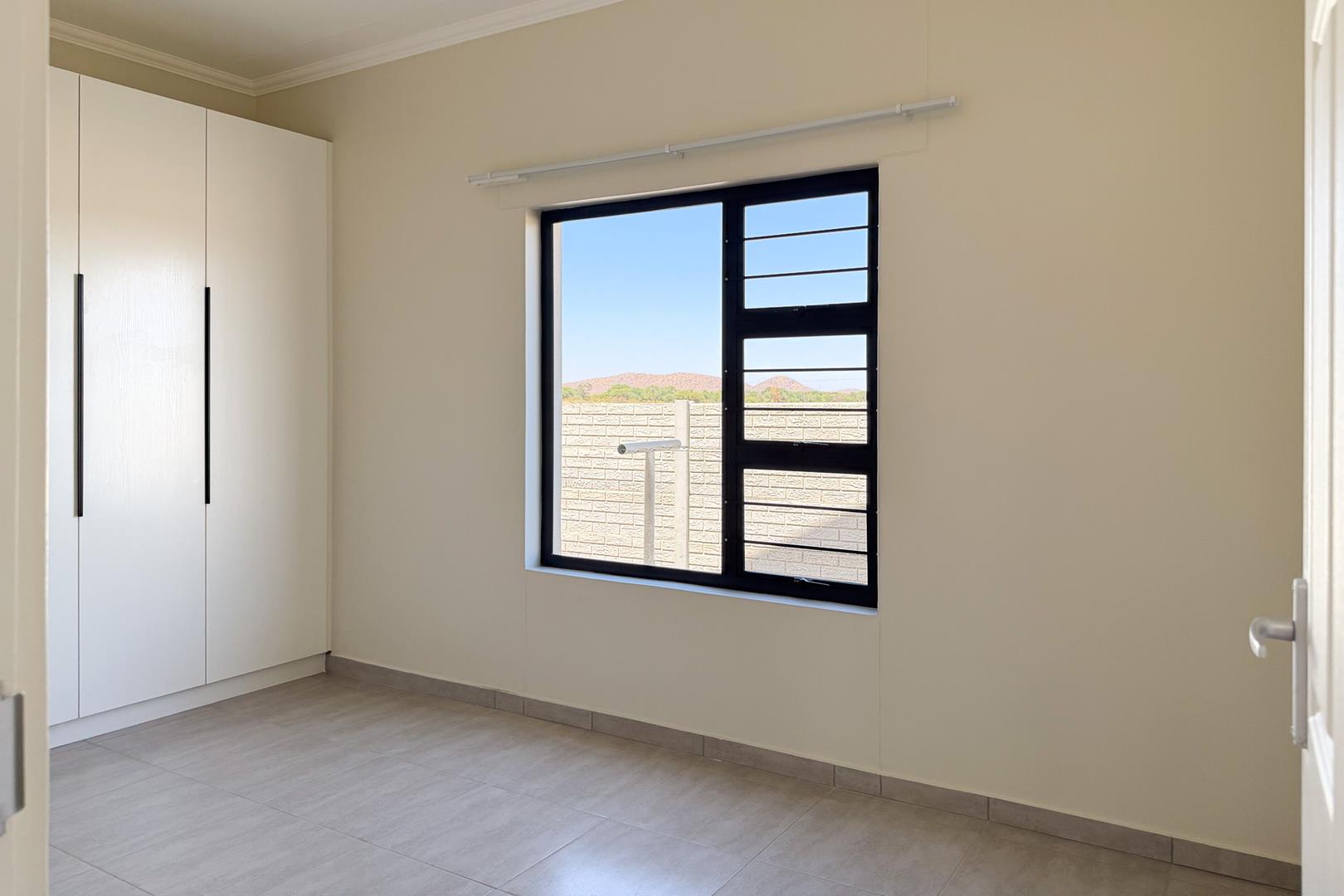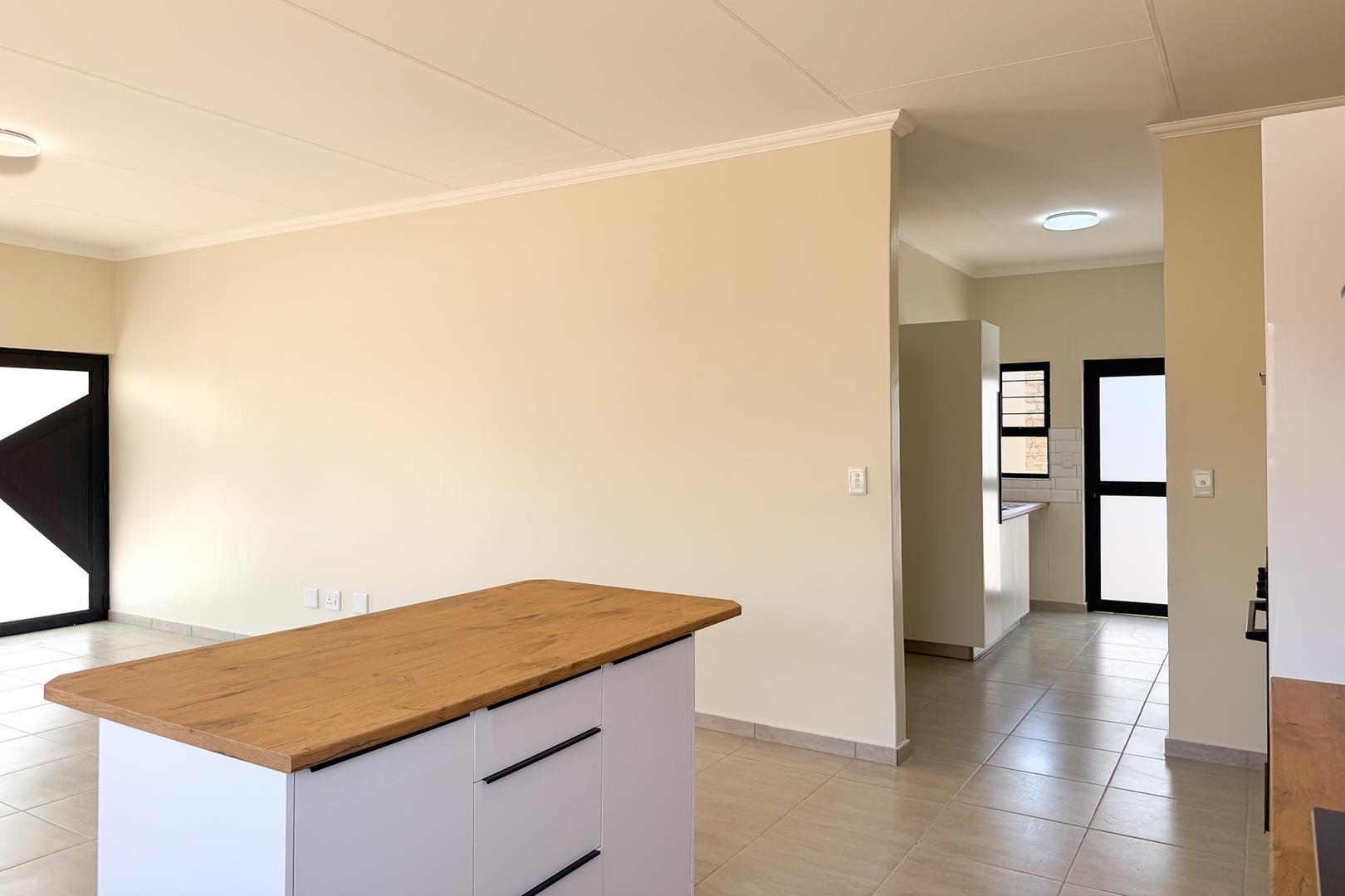 Experience the luxurious living of this extraordinary house. Three generously sized bedrooms, two full bathrooms, and modern kitchen. The open-plan living area creates a welcoming and relaxed atmosphere. Main bedroom boasts a dressing room and full ensuite. Double garage and spacious erf. Burglar bars installed to enhance security. The extra-large solar water geyser will save you electricity. THIS HOUSE IS A MUST SEE.