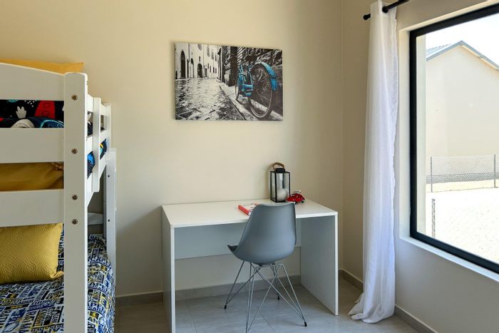 Comfortable family living in Osona Village — 30-minute drive to Windhoek with daily buses, sleek kitchen, solar geyser, double garage; developer pays transfer and bond costs.