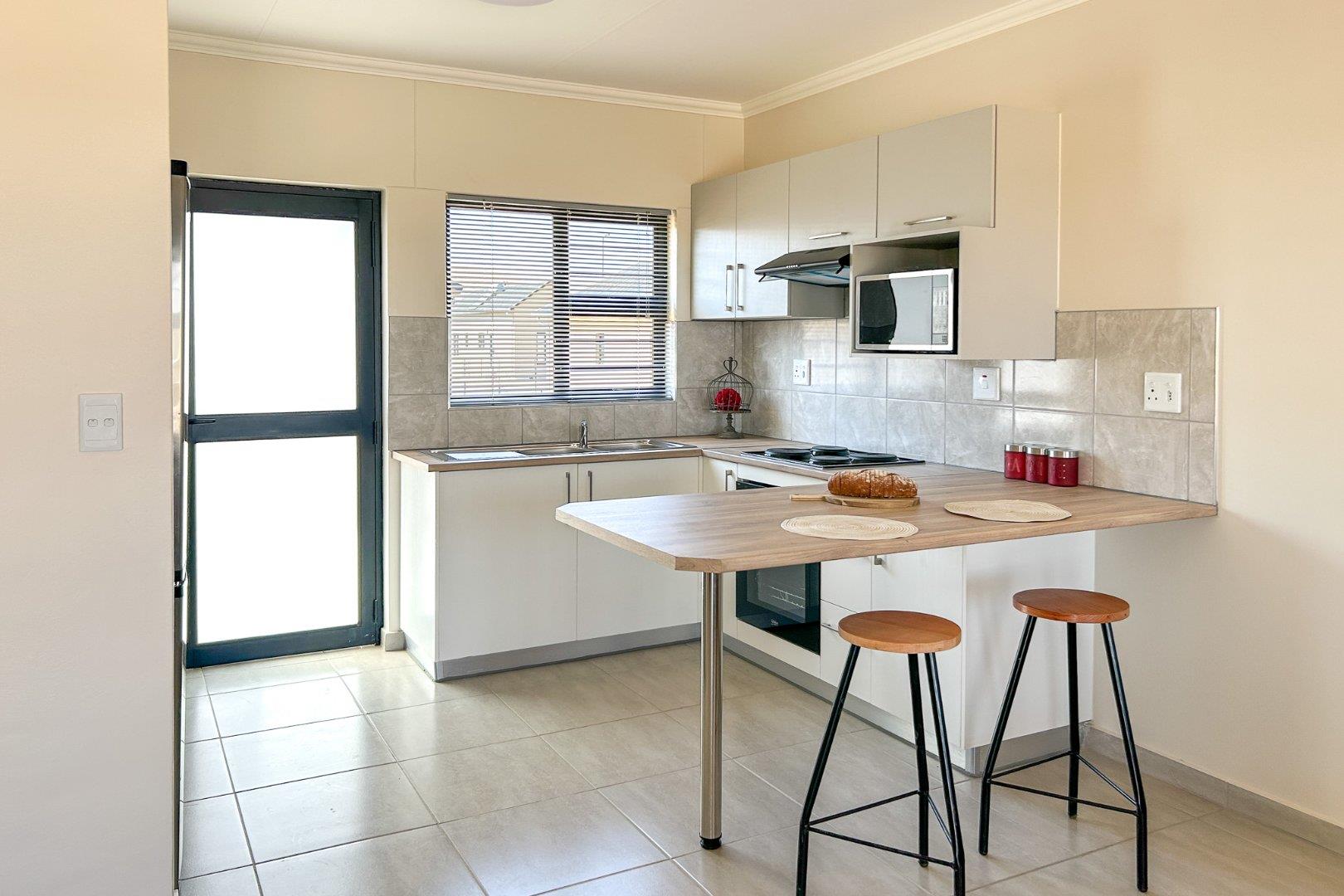 Full title erf, with spacious backyard primed for expansion. 2-bedroom, 1-bathroom with shower. Modern open-plan living area. Kitchen with built-in cupboards + oven and sit-down countertop. Spacious main bedroom, and all bedrooms with built-in cupboards. Solar geyser ensuring you lower electricity costs. Aluminium & glass doors and windows. Burglar bars and carport included.