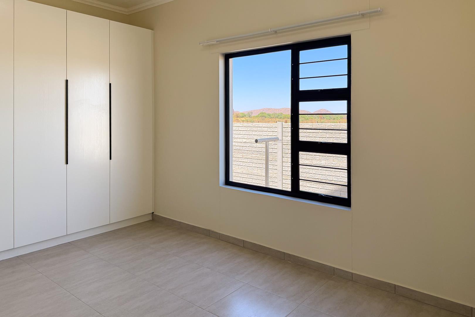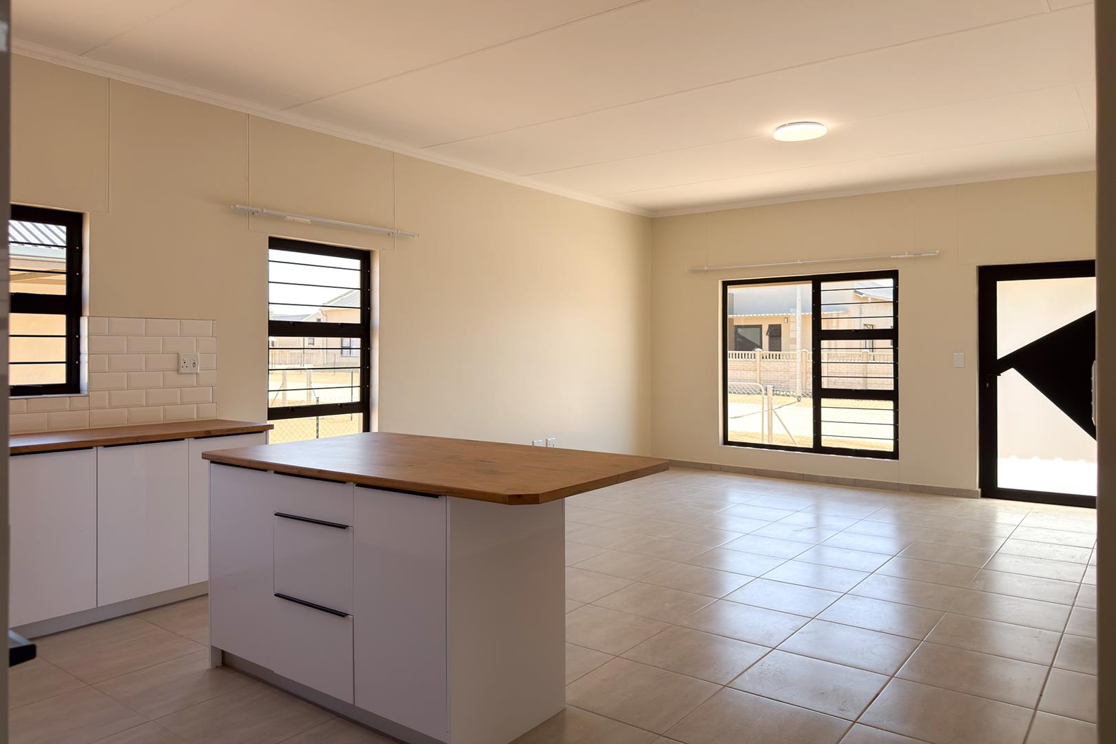 Experience the luxurious living of this extraordinary house. Three generously sized bedrooms, two full bathrooms, and modern kitchen. The open-plan living area creates a welcoming and relaxed atmosphere. Main bedroom boasts a dressing room and full ensuite. Double garage and spacious erf. Burglar bars installed to enhance security. The extra-large solar water geyser will save you electricity. THIS HOUSE IS A MUST SEE.