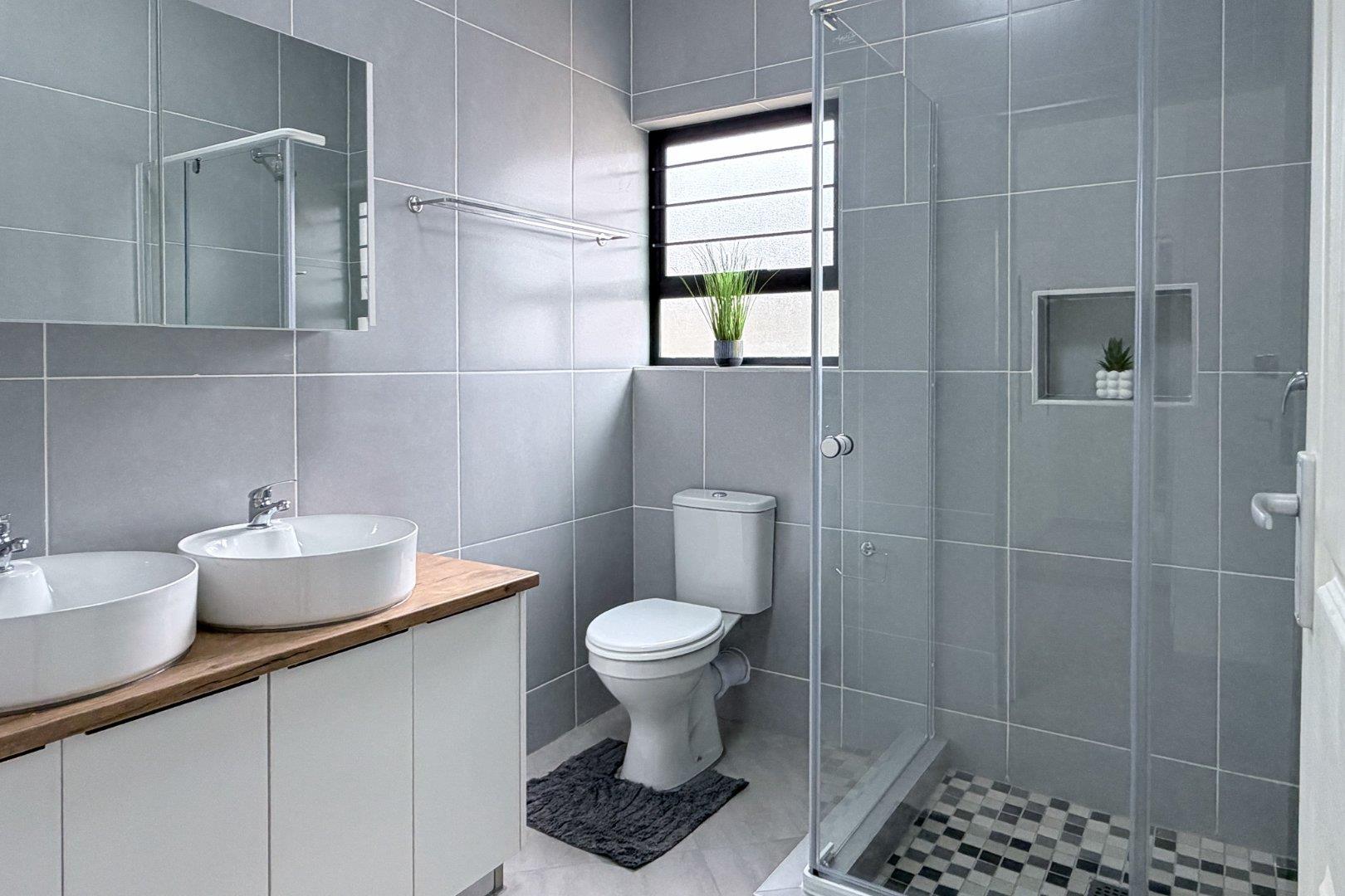 An exceptional home with open-plan living area and modern, white gloss kitchen with scullery. The 4-bedrooms offer built-in cupboards. Your spacious, main bedroom features an elegant ensuite and dressing room with extra storage. A second, full bathroom includes bath and shower. Park your vehicles in the large, double garage and enjoy the energy savings benefit of the extra-large solar geyser.